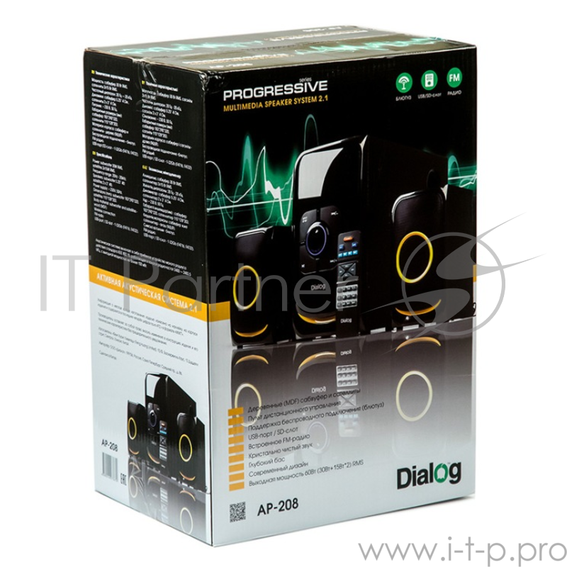 Колонки Dialog Progressive AP-208 BLACK - акустические колонки 2.1, 30W+2*15W RMS,Bluetooth,FM,USB+SD reader