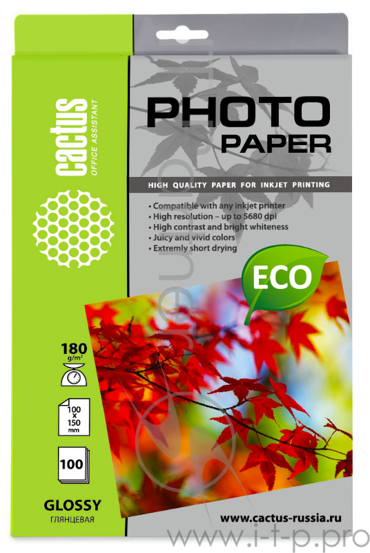 Бумага CACTUS CS-GA6180100E Фотобумага 10x15/180г/м2/100л./белый глянцевое для струйной печати