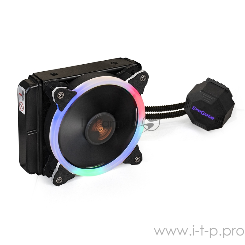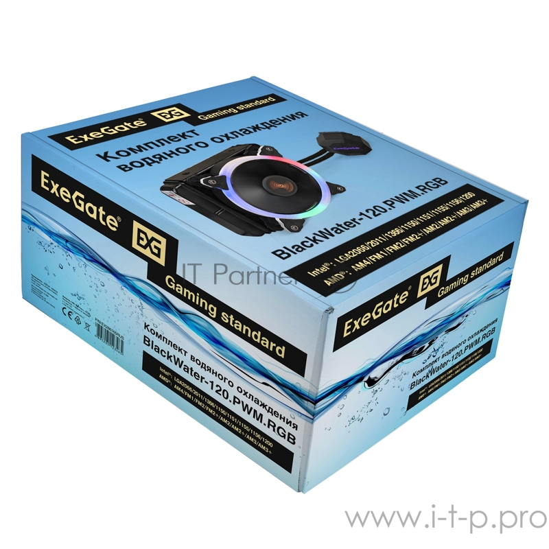 Комплект водяного охлаждения ExeGate EX286165RUS BlackWater-120.PWM.RGB (Al, RGB подсветка, LGA2066/2011/1366/1150/1151/11 TDP 200W, Fan 120mm, PWM, 1000-2000RPM, Hydro bearing, 4pin, 11-22db, 1,1 к