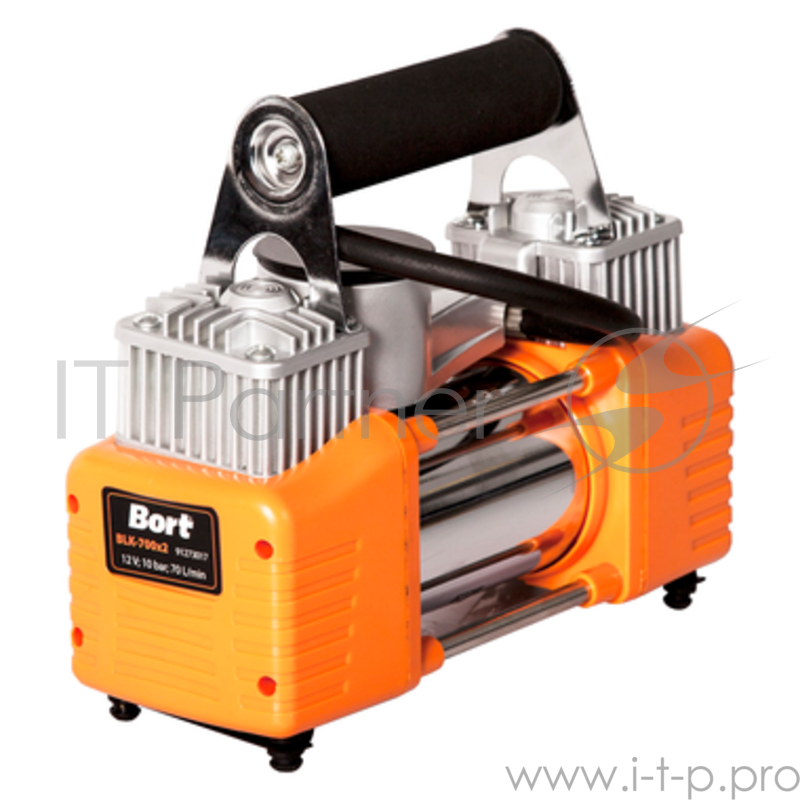 Компрессор автомобильный Bort BLK-700x2 [91274014] { 70 л/мин, 10 бар, 12 В, 200 Вт, 4000 об/мин, 2.7 кг, набор аксессуаров 6 шт }