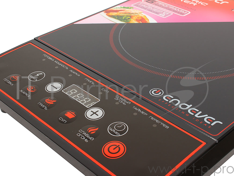 Плитка стеклокерамическая Endever Skyline DP-40, 2000Вт, дно посуды от 12-25 см, 7 автоматических программ, таймер, цвет черный