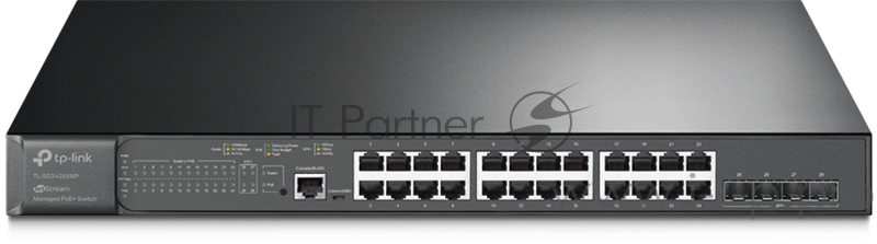 Коммутатор 24-port Gigabit Managed PoE switch with 4 10G SFP+ ports, support 802.3af/at PoE, 1 console port, 19-inch rack mount, support L2/L2+ featu