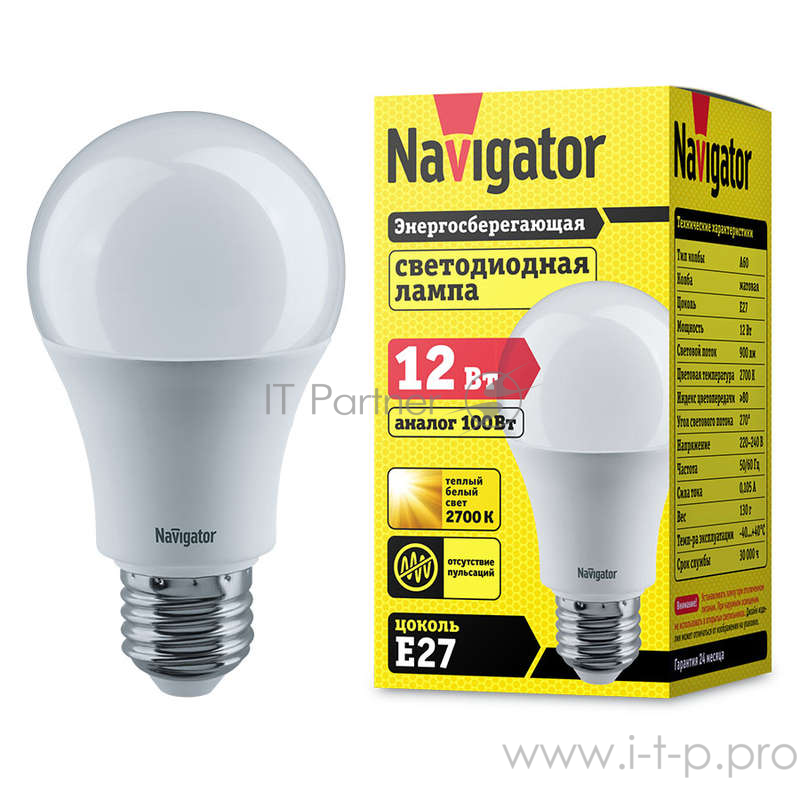 Navigator Лампы светодиодные Navigator 71296 Светодиодная лампа NLL-A60-12-230-2.7K-E27