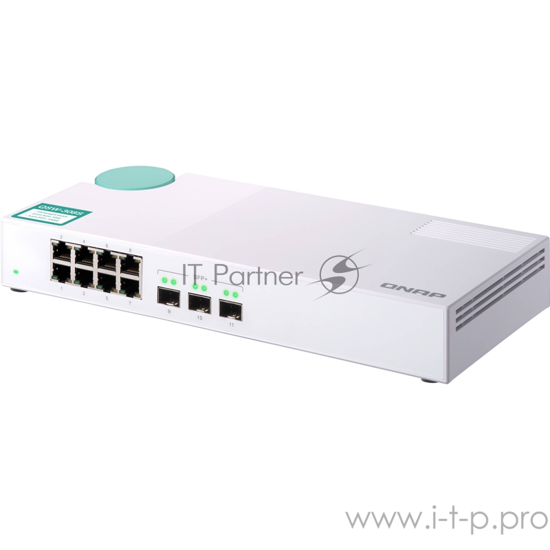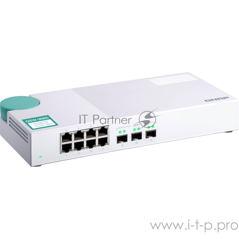 Коммутатор QNAP QSW-308S Unmanaged 10 Gb / s switch with 3 SFP + ports and 8 1 Gb / s RJ-45 ports, throughput up to 76 Gb / s, JumboFrame support