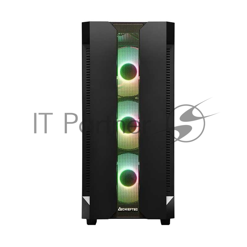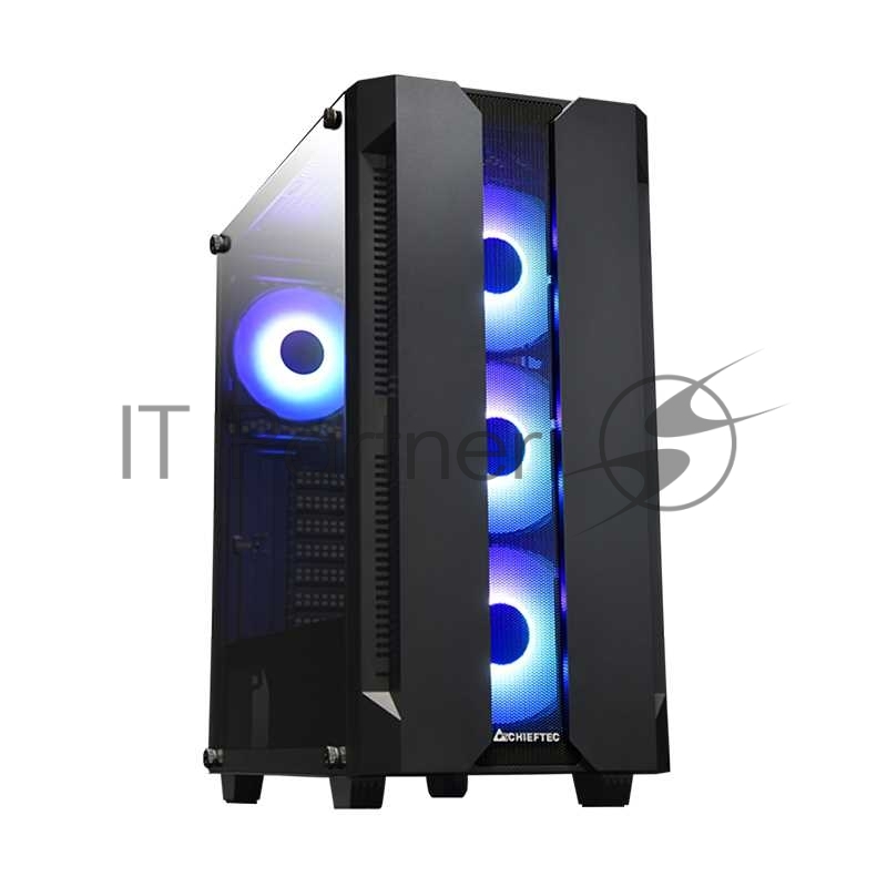 Корпус CHIEFTEC HUNTER GS-01B-OP без БП, боковая панель из закаленного стекла, 3xARGB LED 120мм вентилятора спереди, 1xARGB LED 120мм вентилятор сзади, черный, ATX