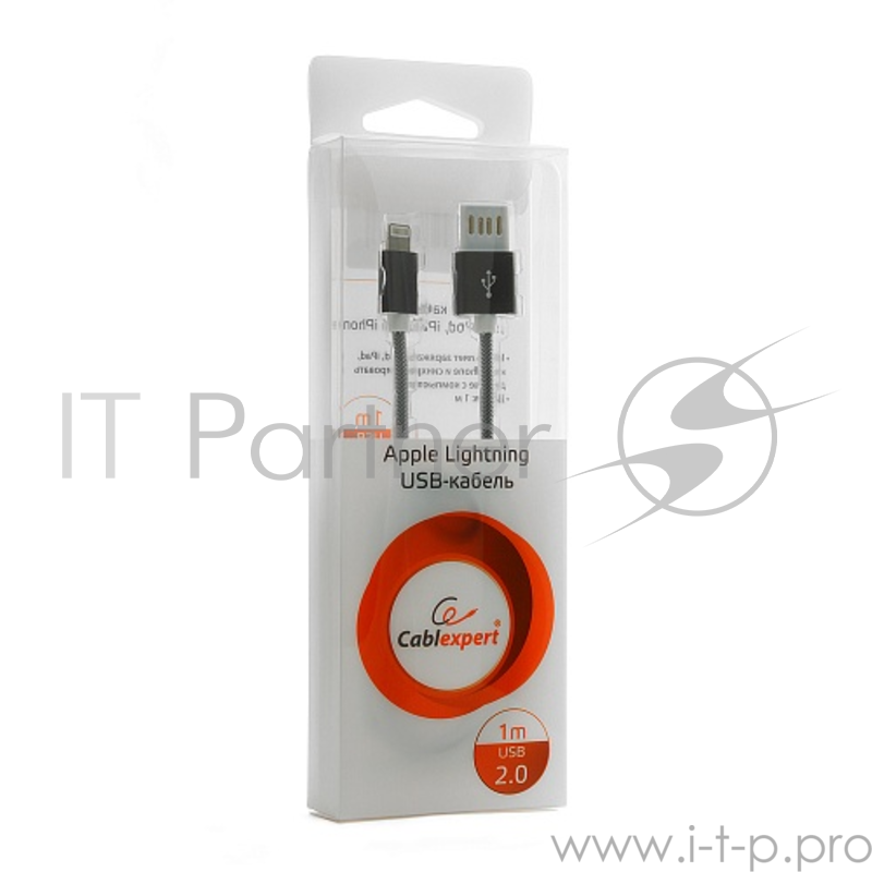 Кабель Gembird Кабель USB 2.0 Cablexpert CCB-ApUSBgy1m, AM/Lightning 8P, 1м, армированная оплетка, разъемы темно-серый металлик, блистер