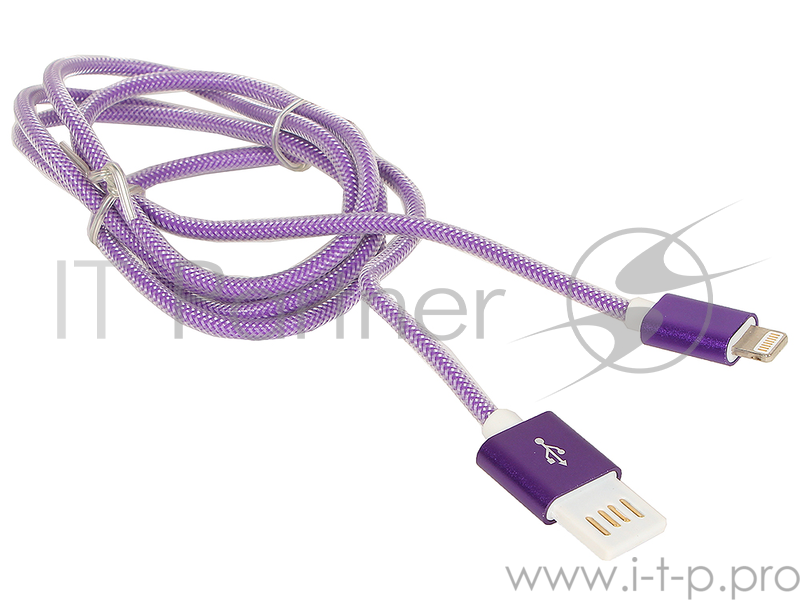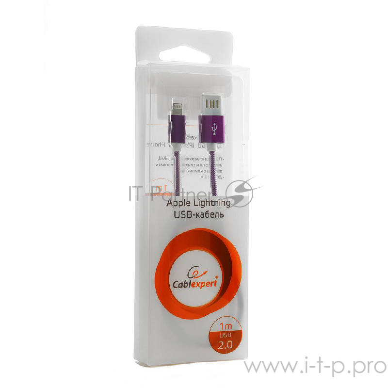 Кабель Gembird Кабель USB 2.0 Cablexpert CCB-ApUSBp1m, AM/Lightning 8P, 1м, армированная оплетка, разъемы фиолетовый металлик, блистер