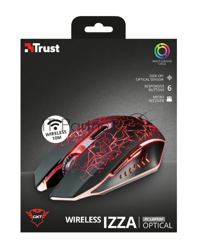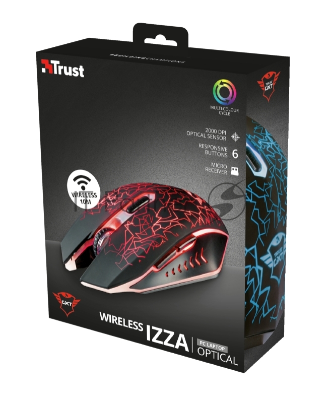 Мышь Trust Gaming Wireless Mouse GXT 107 Izza, USB, 800-2000dpi, Illuminated, PC/PS4/Xbox One, Black [23214]