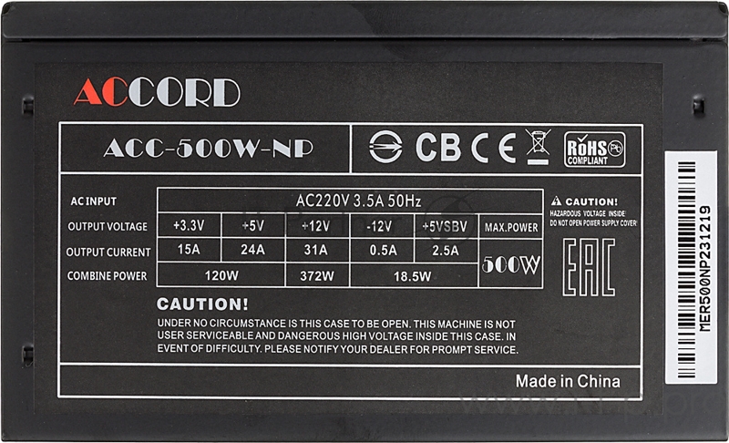 Купить Блок питания Accord ACC-500-NP в Коврове. Забрать в магазине "Ваш Компьютер" г.Ковров пр-т Ленина 20