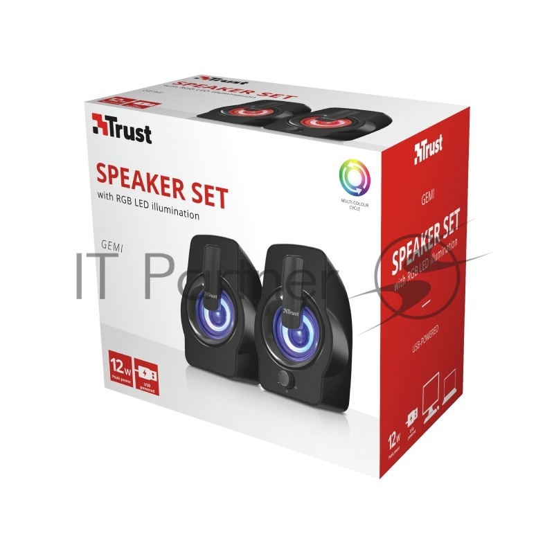 Колонки Trust Speaker System Gemi, 2.0, 6W(RMS), USB / Mini jack 3.5mm, Black, RGB [22948]