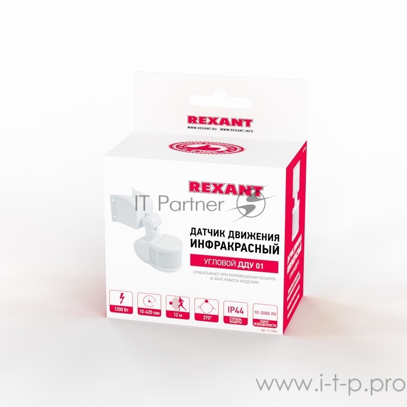 Датчик движения угловой ДДУ 01, 270°, 1200 Вт, 10-2000 Лк, 2-12 м,10-420 сек. IP44 REXANT
