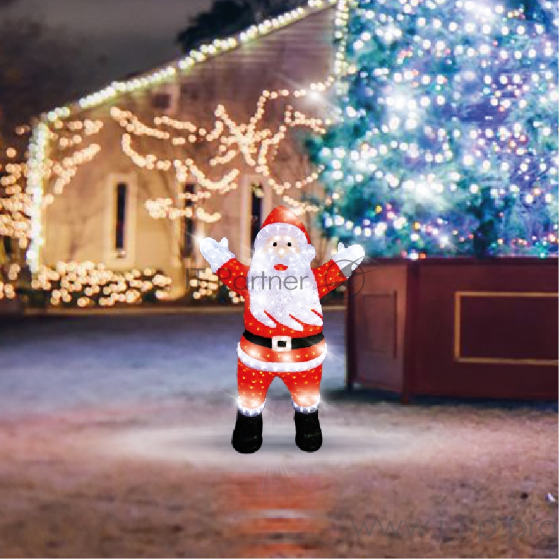 Акриловая светодиодная фигура «Приветствующий Санта Клаус» 76х47х120 см, IP65, понижающий трансформатор в комплекте NEON-NIGHT