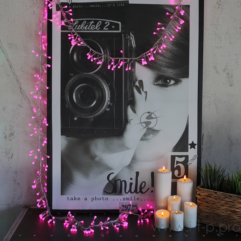 Гирлянда Мишура LED 3 м прозрачный ПВХ, 288 диодов, цвет розовый
