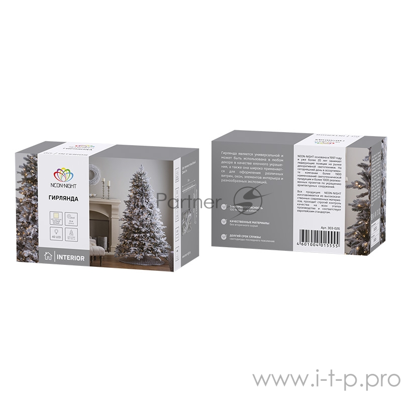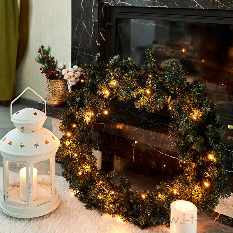 Гирлянда Твинкл Лайт 6 м, темно-зеленый ПВХ, 40 LED, цвет ТЕПЛЫЙ БЕЛЫЙ