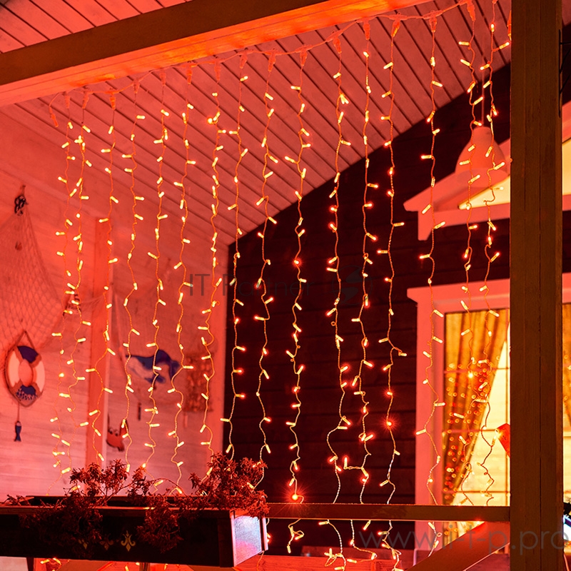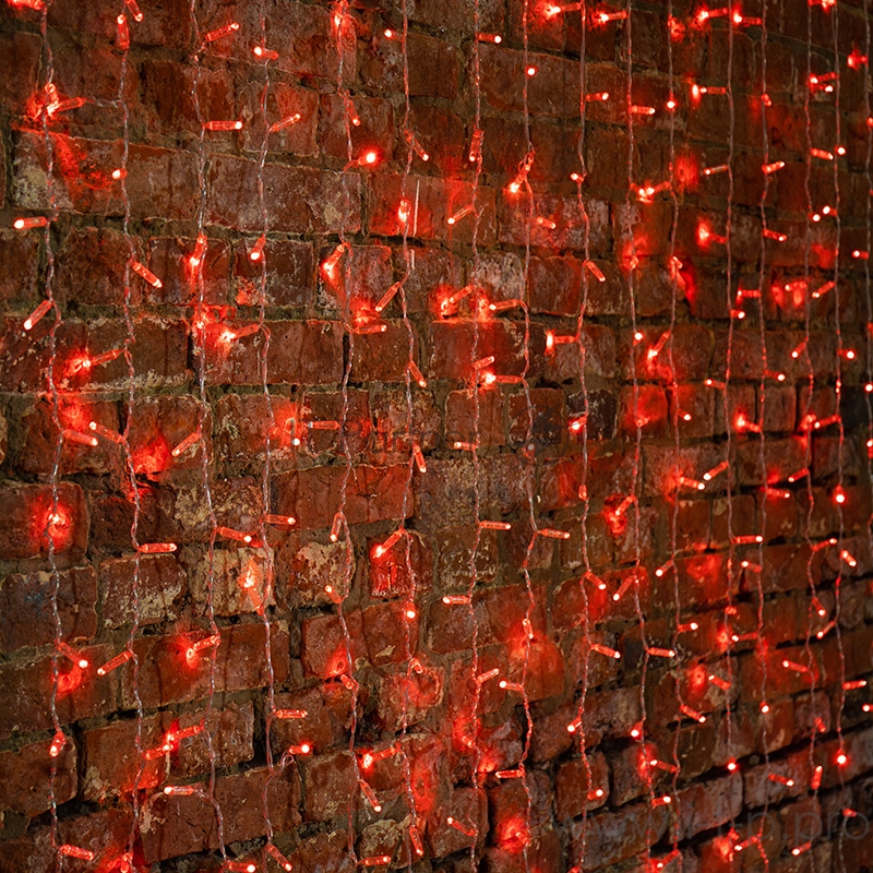 Гирлянда Светодиодный Дождь 2х3м, постоянное свечение, прозрачный провод, 230 В, диоды КРАСНЫЕ, 448 LED