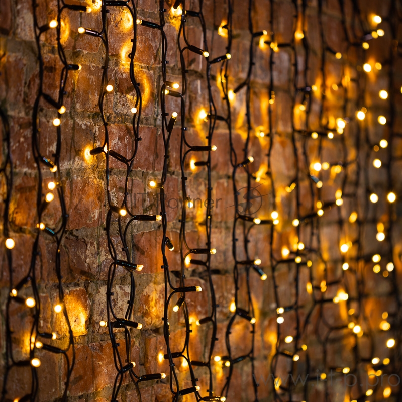 Гирлянда Светодиодный Дождь 2х3м, постоянное свечение, черный провод КАУЧУК, 230 В, диоды ТЕПЛЫЙ БЕЛЫЙ, 760 LED