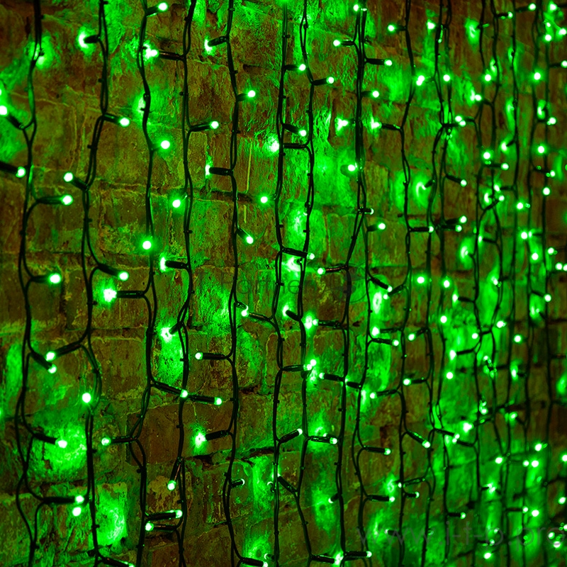 Гирлянда Светодиодный Дождь 2х1,5м, постоянное свечение, черный провод КАУЧУК, 230 В, диоды ЗЕЛЕНЫЕ, 360 LED