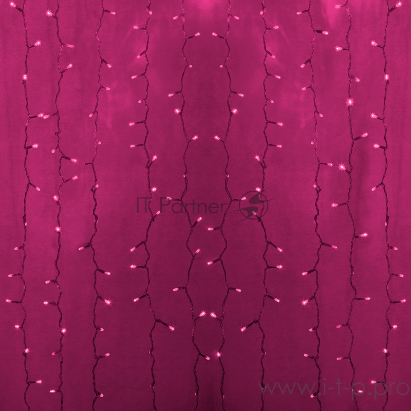 Гирлянда Светодиодный Дождь 2х1,5м, постоянное свечение, прозрачный провод, 230 В, диоды РОЗОВЫЕ, 360 LED