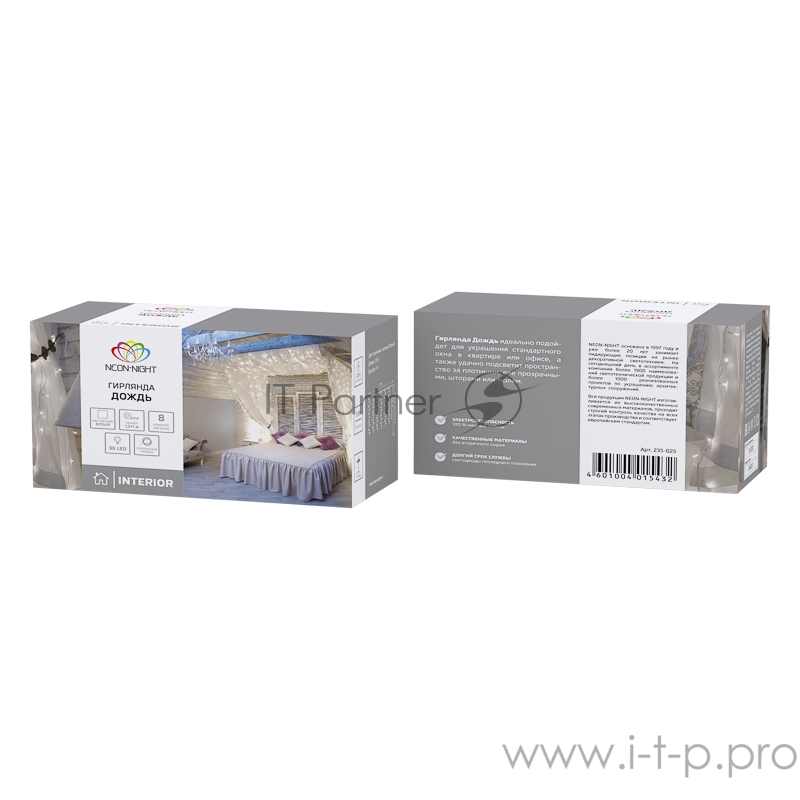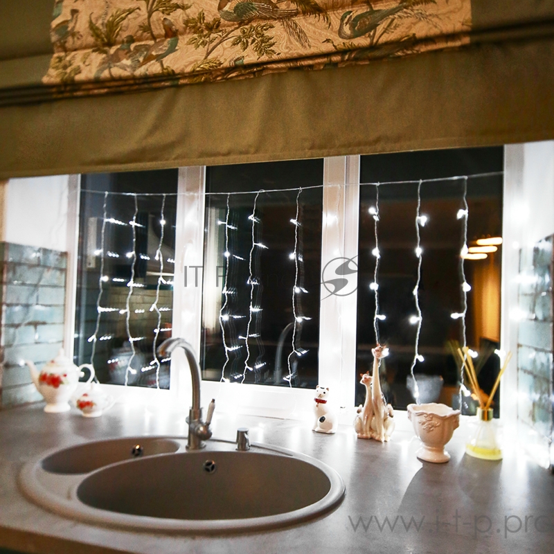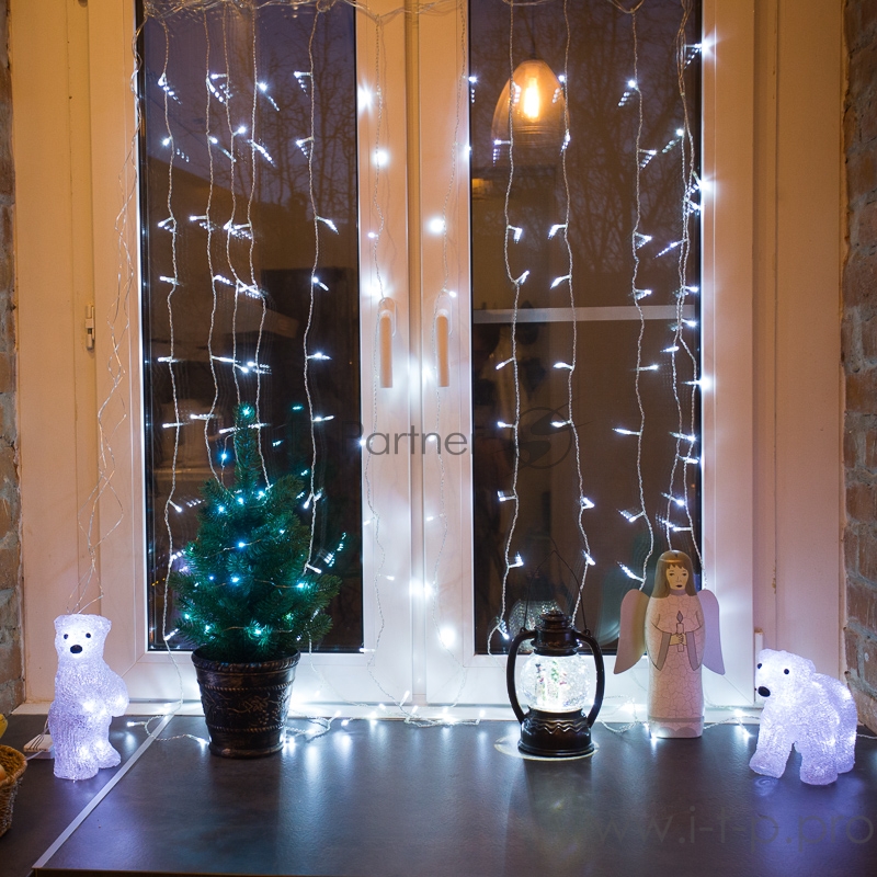 Гирлянда Светодиодный Дождь 1,5х1м, свечение с динамикой, прозрачный провод, 230 В, диоды БЕЛЫЕ