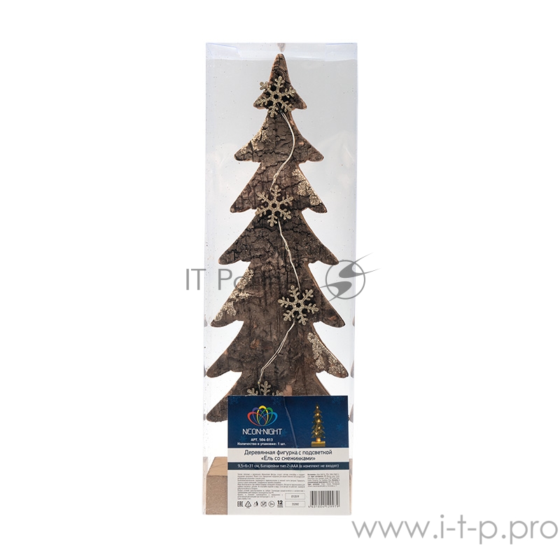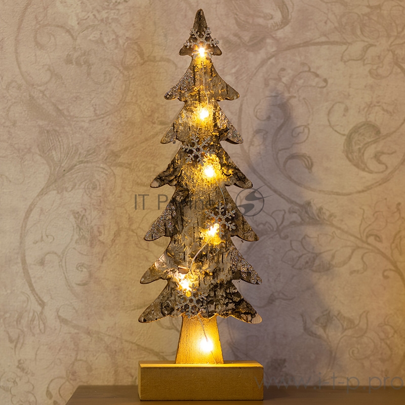 Деревянная фигурка с подсветкой Ель со снежинками 9,5*6*31 см