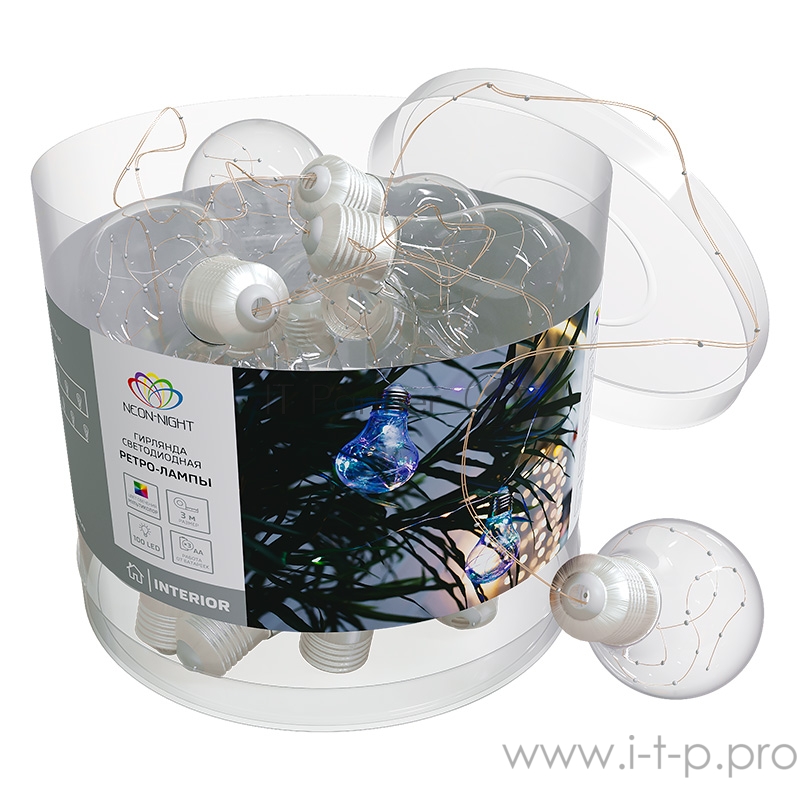 Гирлянда светодиодная Ретро-лампы, 3 м, Мультиколор