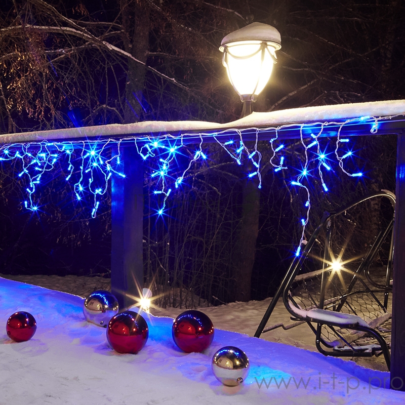 Гирлянда Айсикл (бахрома) светодиодный, 2,4 х 0,6 м, белый провод, 230 В, диоды синие, 88 LED NEON-NIGHT