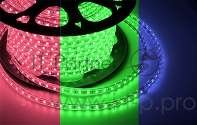 LED лента 220 В, 10х7 мм, IP67, SMD 2835, 60 LED/m, цвет свечения RGYB (мульти), бухта 100 м