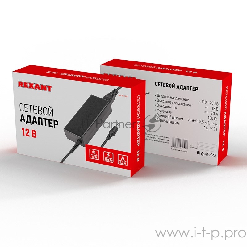Источник питания 110-220 V AC/12 V DC 9 А 100 W с DC разъемом подключения 5.5х2.1, без влагозащиты (IP23)