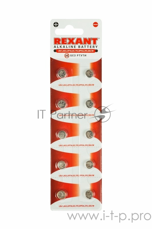 Батарейка LR41, AG3, LR736, G3, 192, GP92A, 392, SR41W REXANT
