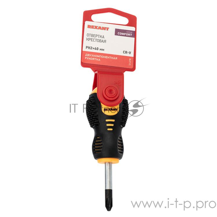 Отвертка крестовая PH 2х40 мм, двухкомпонентная рукоятка | 12-4730 | REXANT