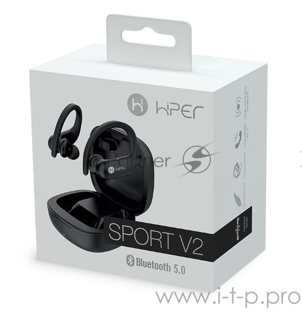 Наушники Hiper TWS Sport V2 Bluetooth 5.0 гарнитура Li-Pol 2x35mAh +480mAh черный