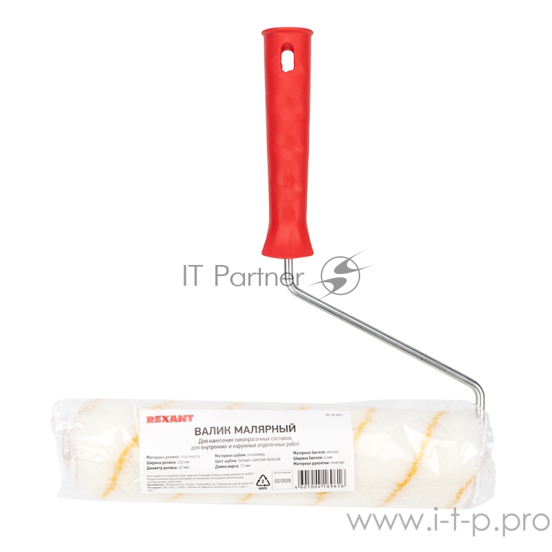 Валик полиамид белый с желтой полосой, ворс 11 мм, ширина ролика 240 мм, Ø 42 мм, бюгель 6 мм REXANT