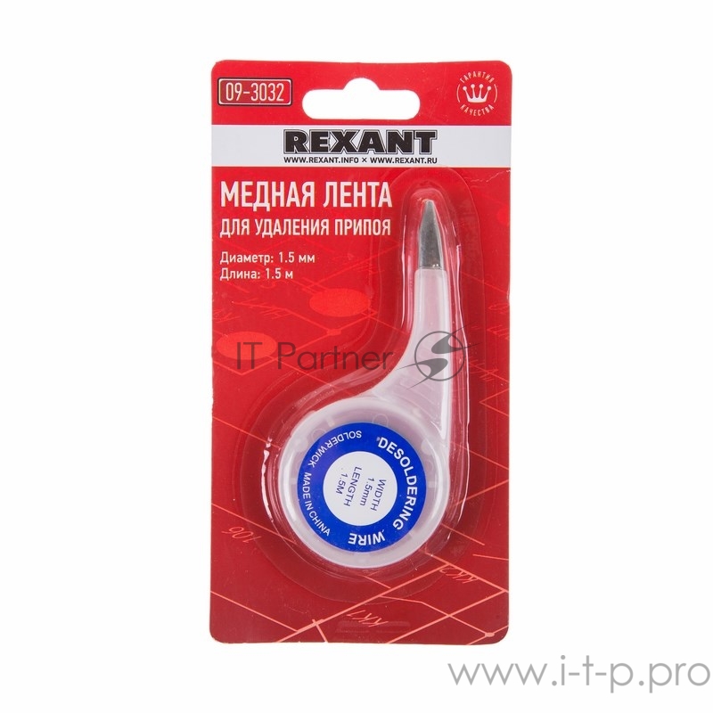 Оплетка для удаления припоя REXANT, медная, 1.5 мм x 1.5 м, диспенсер