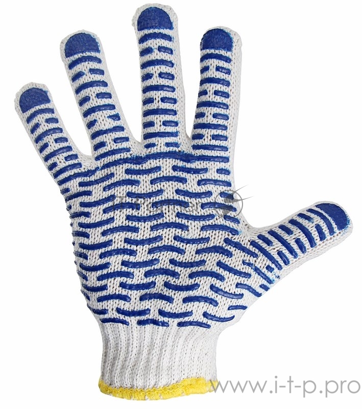 Перчатки х/б с нанесением ПВХ («Волна»), 4 нити, 55-56 г, 7,5 класс вязки