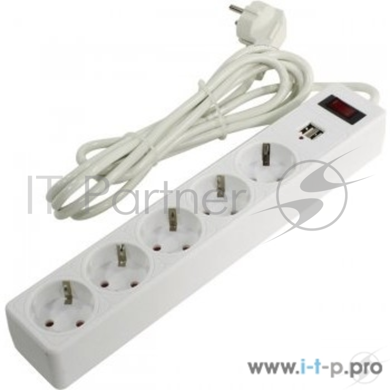 Удлинители бытовые, Сетевые фильтры, Тройники Smartbuy SBSP-30U-W Сетевой фильтр с USB, 10А, 2 200 Вт, 5 розеток, длина 3 м, белый (SBSP-30U-W)/45