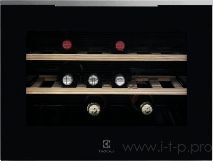 Винный шкаф ELECTROLUX Винный шкаф ELECTROLUX/ Холодильник для вина, климатический класс ST, 18 бутылок, 2 деревянные полки, 1 пластик, цвет черный, нерж.сталь