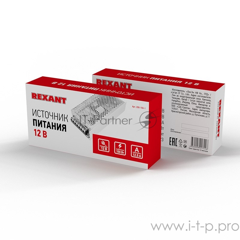 Источник питания 220 V AC/12 V DC 12,5 A 150 W с разъемами под винт, без влагозащиты (IP23)