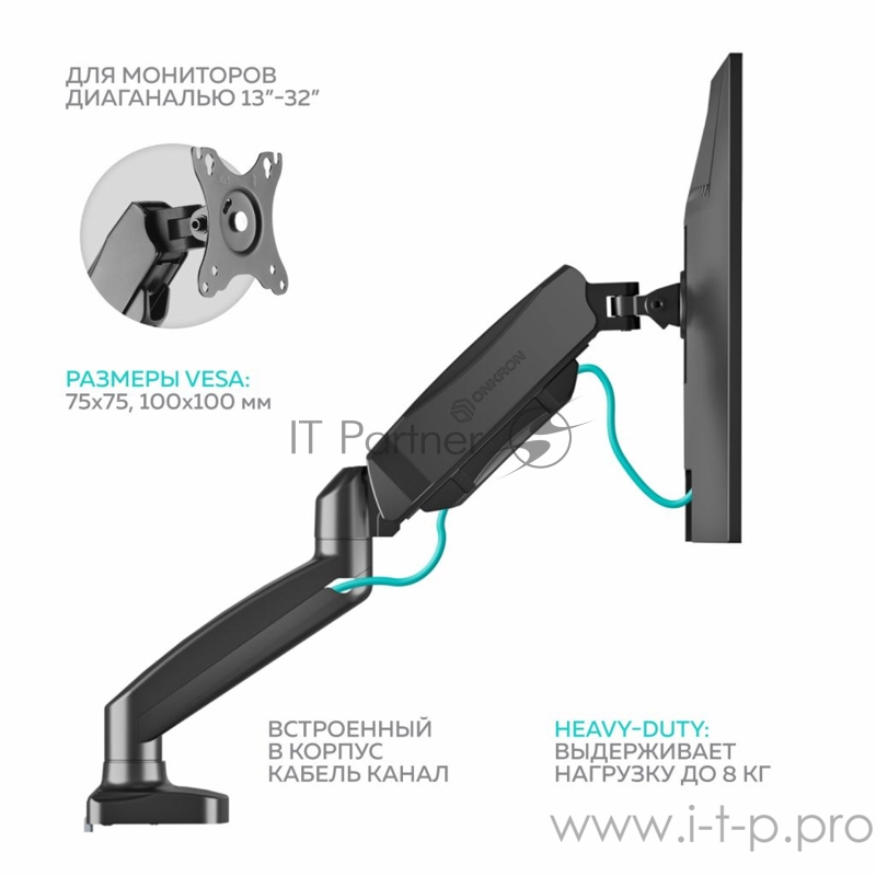 Кронштейн для мониторов Onkron G160W белый 13-27 макс.13кг настольный поворот и наклон верт.перемещ.