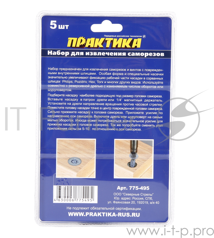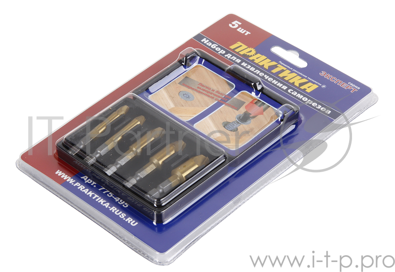 Сверла,коронки,наборы Набор экстракторов ПРАКТИКА для извлечения поврежденных саморезов 5 шт, хвост - HEX 1/4 775-495