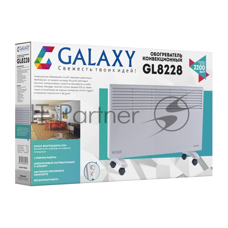Конвектор GALAXY GL 8228 мех. термостат белый(2200Вт, механический, регулировка мощности, термостат, влагозащитный корпус, белый, монтаж: настенный/напольный, защита от перегрева, бесшумная работа, колеса для перемещения.)