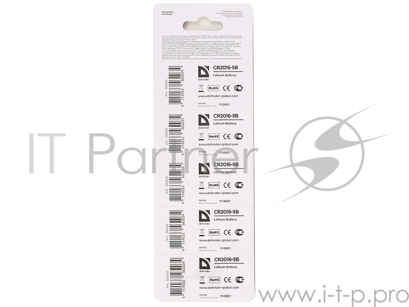 Батарейка Defender литиевая (CR-2016) CR2016-5B в блистере 5 шт