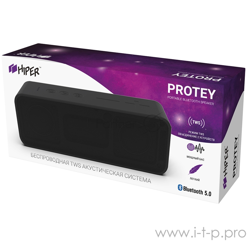 Активная акустическая система HIPER PROTEY Black H-TS3, 10 ВТ,130 Гц - 18 кГц,2200 мАч, BT 5,0,Hands-free,Type C