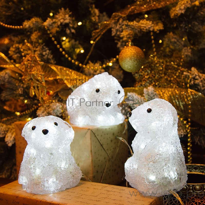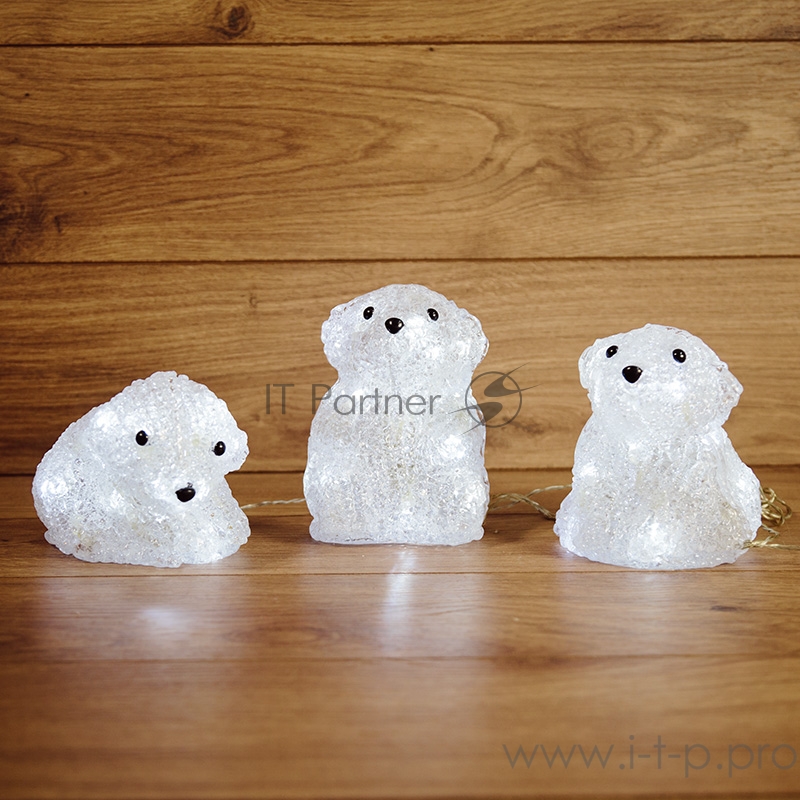 Акриловая светодиодная фигура Медвежата 3 шт, 20 см, 60 светодиодов, IP 20, понижающий трансформатор в комплекте, NEON-NIGHT