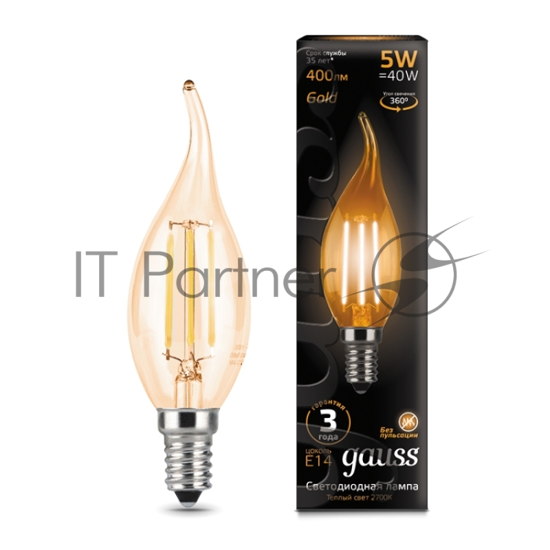 Лампа светодиодная Filament Свеча на ветру E14 5Вт 2700К Golden GAUSS 104801005