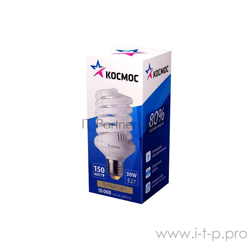 Лампа люминесцентная компакт. SPC 30Вт E27 спиральная 2700К КОСМОС LKsmSPC30wE2727