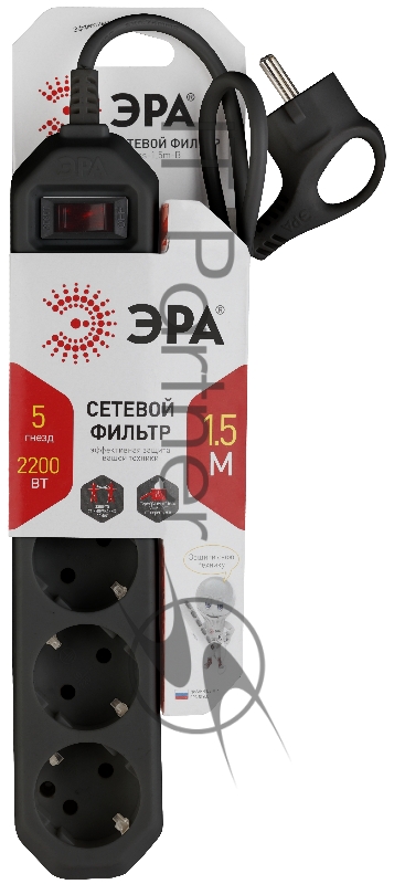 Сетевой фильтр ЭРА USF-5es-1.5m-B, 1.5м, черный [б0019032]