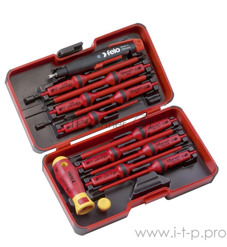 Набор стержней диэлектрических и рукоятка E-SMART с ключом для ящиков в кейсе (уп.14шт) Felo 06391316