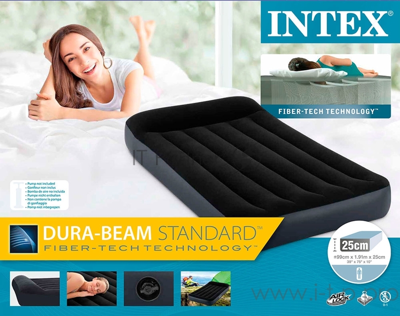 Надувной матрас 64141, Intex, 99х191х25см с подголовником, до 136кг, уп.4