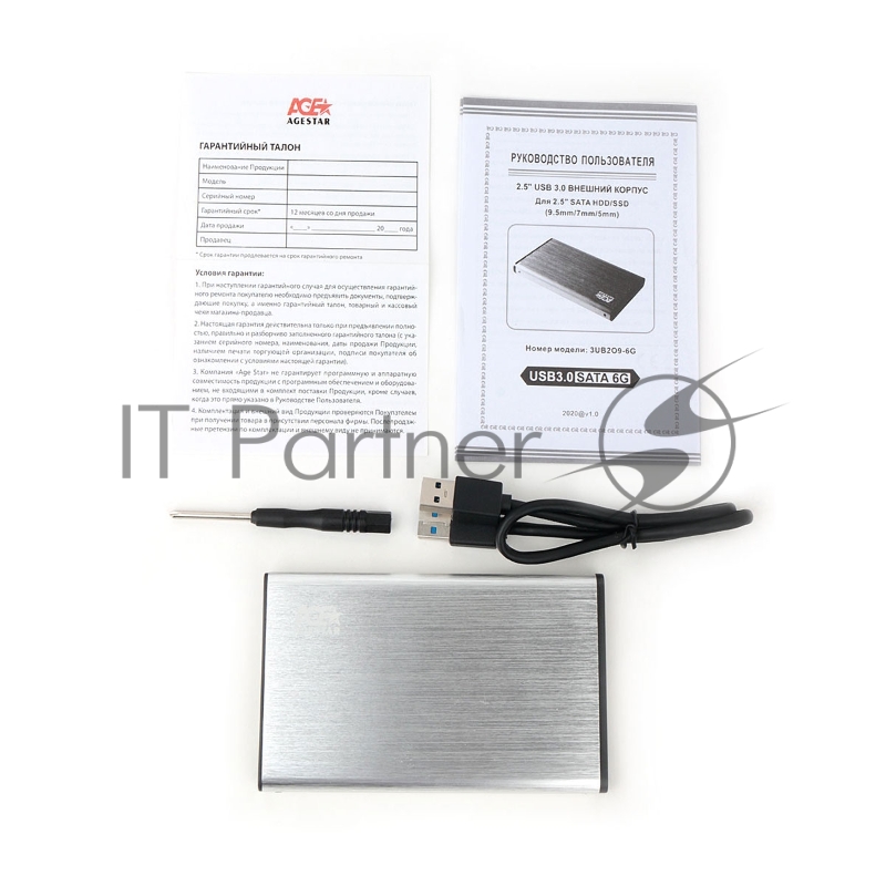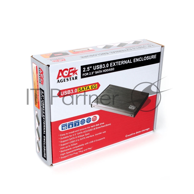 USB 3.0 Внешний корпус 2.5 SATAIII AgeStar 3UB2O9-6G (SILVER), алюминий, серебро
