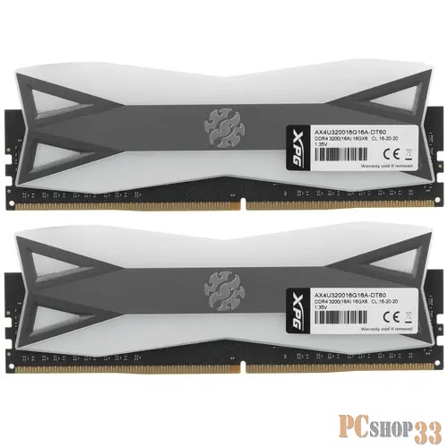 Модуль памяти ADATA XPG SPECTRIX D60G RGB DDR4 Общий объём памяти 32Гб Module capacity 16Гб Количество 2 3200 МГц Множитель частоты шины 16 1.35 В RGB белый AX4U320016G16A-DT60